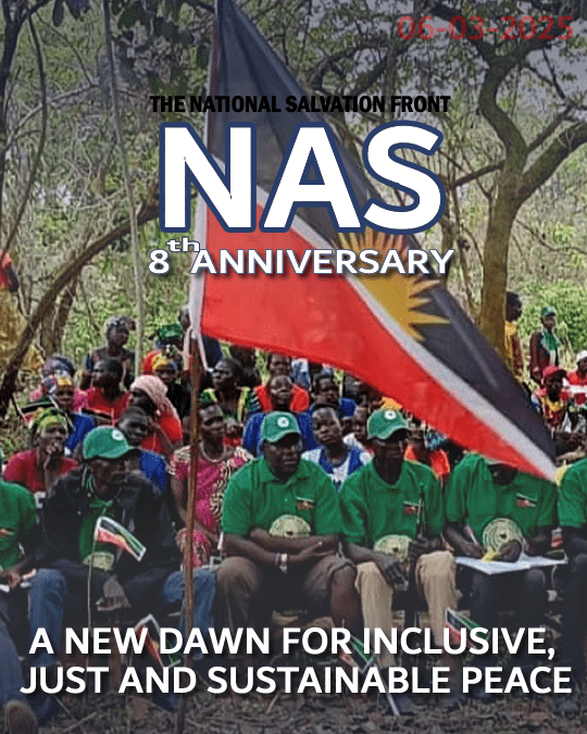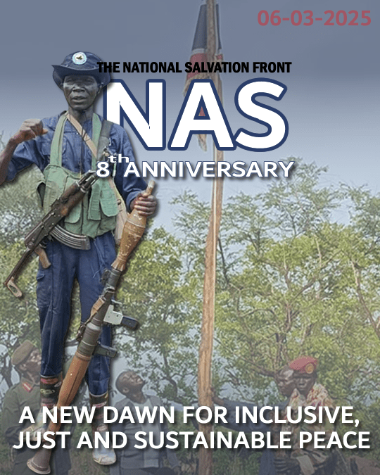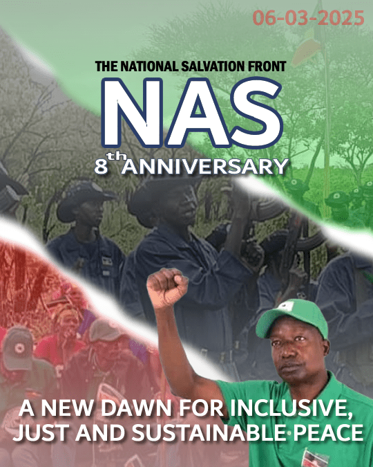 On 6th March 2025, the National Salvation Front (NAS) marked its eighth anniversary with a powerful message of resilience, determination, and hope for the future. Addressing NAS members, supporters, and the people of South Sudan on this historic occasion, Chairman and Commander-in-Chief Gen. Thomas Cirillo Swaka reaffirmed that the struggle for justice and freedom remains stronger than ever.